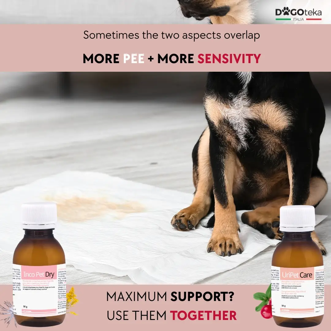 In these cases, IncoPet Dry + UriPet Care can be used together, as they address different and complementary needs, for more complete support.